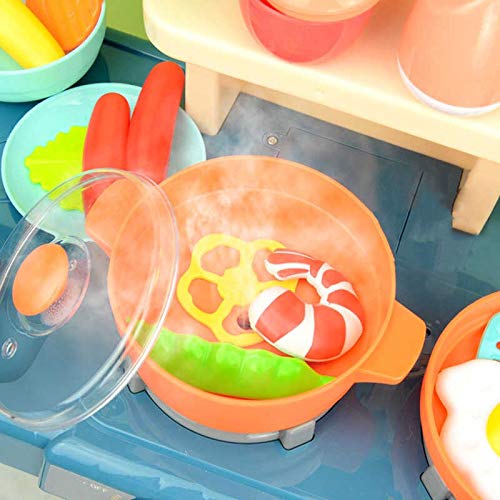 ✔️KALTDAMPF UND GERÄUSCHE- Die Küche gibt realistische Kochgeräusche wie Braten und Sprudeln von sich. Der linke Brenner verfügt über einen eingebauten Verdampfer, mit dem Sie die Wirkung von kaltem Dampf erzielen können. Um die Dampfwirkung zu erzielen, geben Sie ca. 50 ml Wasser in die Öffnung des Brenners. Nach einiger Zeit (nach dem Kochen des Wassers) tritt kalter Wasserdampf leer den Töpfen leer.