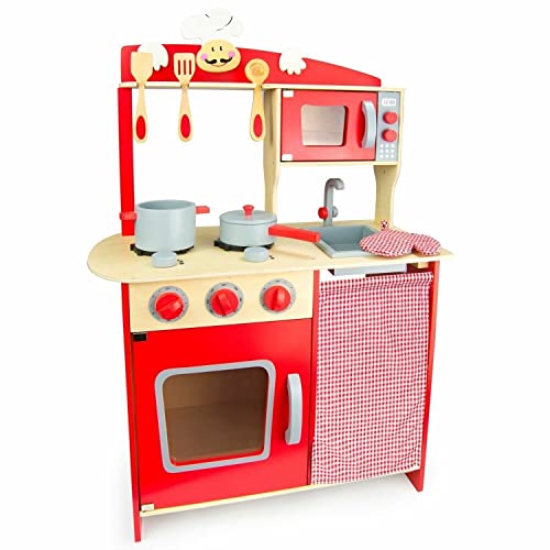 Dieses Holzspielküche hat die Gesamtheit, was ein junger Koch braucht.