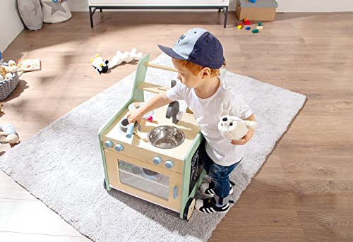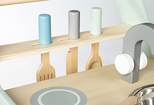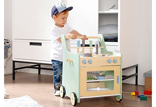 Der fahrbare Küchenwagen wird Infolge die Maltafel und die dezenten Pastellfarben zu etwas aufgebraucht Besonderem. Er schult gleichzeitig Kreativität, Fantasie und Sozialverhalten von kleinen Küchenchefs.
