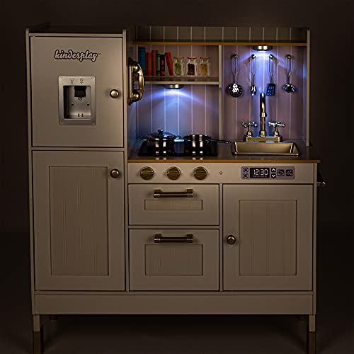 ✔️ [Reich ausgestattetes Küchenset] – Die Küche für kinder von Kinderplay im „Vintage“-Stil ist ein komplettes Set für kleine Köche, die Chefs nachahmen. Es hat u.a. Induktionskochfeld, Wasserspender, Knöpfe, sich öffnende Schränke, Wasserhahn, Spüle, Backofen, Telefon, LED-Punktbeleuchtung. Küchenspielzeug von Kinderplay