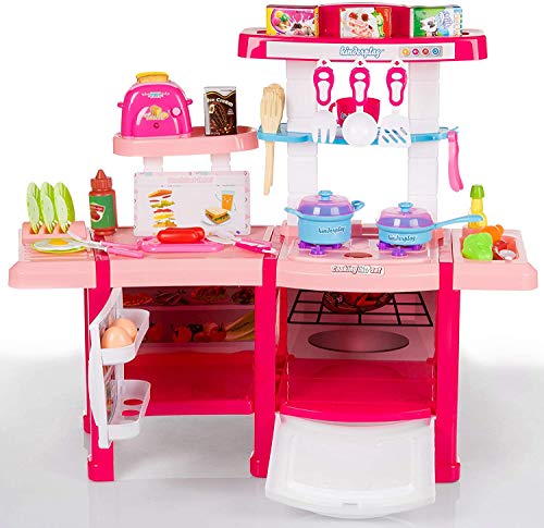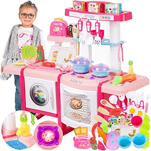 Kinderplay Kinderküche Spielküche mit Toaster – Kinder Küche mit Zubehör, Küchenspielzeug mit Sound- und Licht…