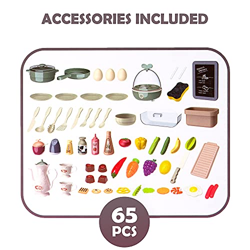 ✔️ [Die Höhe der Kinderküche beträgt 93,5 cm vom Boden bis zur Arbeitsplatte 46cm. 65 Zubehörteile im Set] – Diese Küche ist reichhaltig größer als andere vergleichbare Modelle. Sie hilft, die manuellen Fähigkeiten des Kindes zu entwickeln. Unsere Küche ist ein untrennbarer Bestandteil der Ausstattung jedes jungen Chefs. Das Zubehör umfasst: Obst, Gemüse, Töpfe, Tassen, Teekanne, Teller, Besteck, Kekse, Pralinen, Kreidetafel, Eierkocher, Ketchup, Senf, Pfeffer, Milch