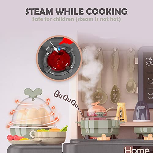✔️ [Nachahmung von Dampf während des Kochens!] – Wenn man den ersten Knopf betätigt, wird der erste Brenner angeschaltet, die Lichter leuchten und der Kaltdampf tritt aus dem Brenner aus und ahmt Wasserdampf nach. Kosmos dies wird vom Geräusch kochenden Wassers begleitet (der Dampf ist nicht heiß, für das Baby völlig stabil)