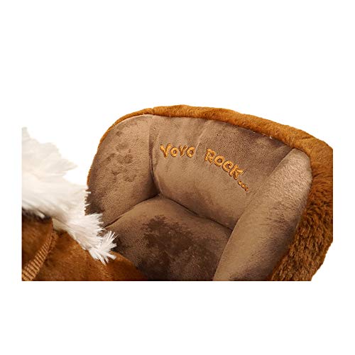 Die Sitzfläche ist ergötzlich und weich gepolstert. Im Ohr des Tieres befindet sich ein Knopf Stattdessen den Sound