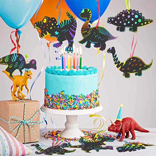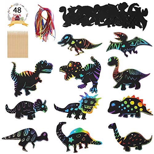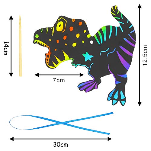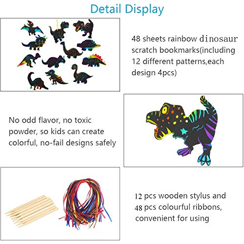 【Was Sie bekommen können】Das Paket enthält 48 Bereich Dinosaurier-Kratzpapier, 12 Bereich Holzstifte, 48 Bereich Bänder, eine großartige Kombination für handwerkliche Kunstwerke. Du kannst sie an die Orte zu hängen, die Sie mögen.