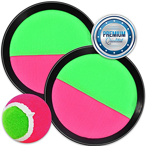✅ 3-teiliges Klettballset in der Größe 19 cm. Durch die verstellbaren Schlaufen mit Klettverschluss ist das Fang-Spiel sondern Erwachsene und Kinder adäquat.