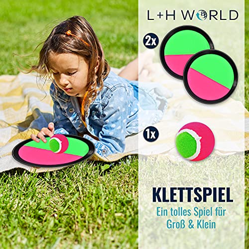 L + H WORLD Klettballspiel 19 cm in Premium Qualität | Fangballspiel Klett-Ballspiel für Kinder & Erwachsene…