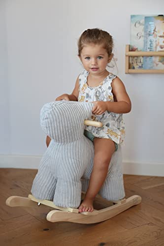 Das Schaukeltier hat einen stabilen Holzsockel und Ihr Kleines kann sich an den Holzgriffen festhalten!