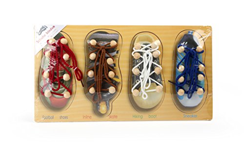 Zur Schulung der Feinmotorik u. a. unterstützt das Lernen seine Schnürsenkel zu binden. Schult die Beharrlichkeit u. a. Fingerfertigkeit.