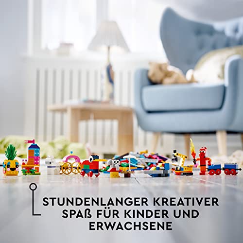 LEGO 11021 Classic 90 Jahre Spielspaß Set, Bausteine-Box mit 15 Mini-Modellen legendärer Spielzeuge, inkl. Zug und…
