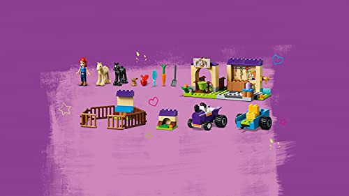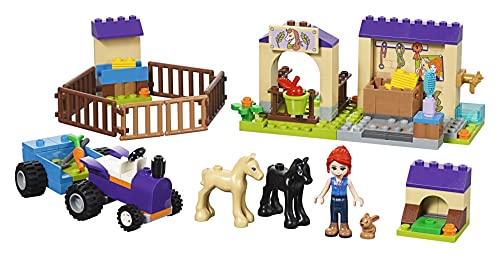 LEGO 41361 Friends Mias Fohlenstall, Spielset mit Mia als Minipuppe, 2 Fohlenfiguren, Kaninchenfigur und Traktor mit Anhänger, Farmspielzeuge für Kinder
