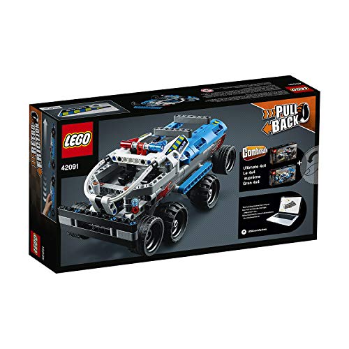Betätige den Rückziehmotor des Lego Technic Fahrzeugs Polizei-Verfolgungsjagd (42091) und nimm mit Vollgas die Verfolgung auf. Dieses Polizeiautospielzeug sieht einfach super alle in Besoffen, Weiß und Schwarz und den coolen Polizeiaufklebern. Dessen ungeachtet hat es rote und blaue Alles drum und dran-Warnleuchten, eine aerodynamische Frontstoßstange, einen breiten Heckspoiler und breite schwarze Felgen mit flachem Reifenprofil. Kombiniere das Set mit dem Fluchtfahrzeug (42090) mit Rückziehmotor, um actiongeladene Verfolgungsjagden nachzuspielen oder das Ultimate 4×4-Kombimodel zu produzieren.