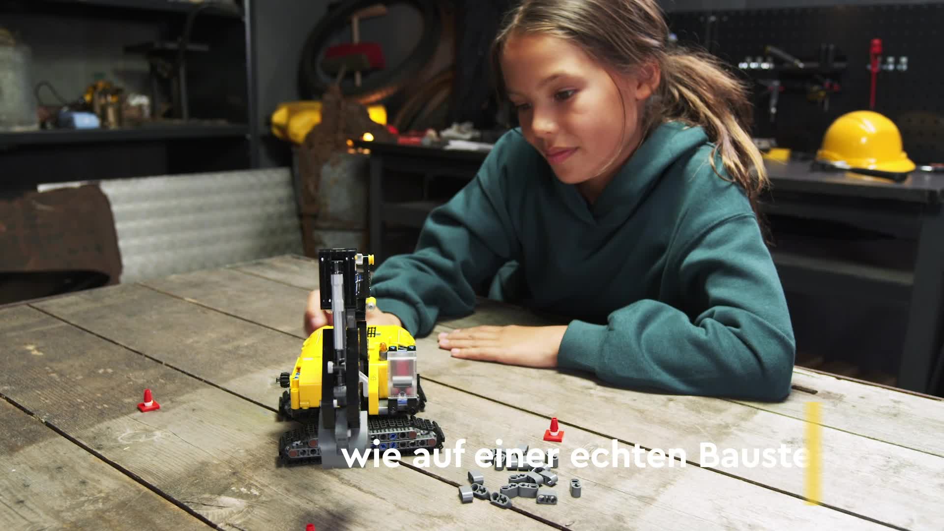 Wenn Kinder dann für eine neue Herausforderung bereit sind, können sie das 2-in-1-Modell in einen Raupentraktor mit Heckbagger umbauen