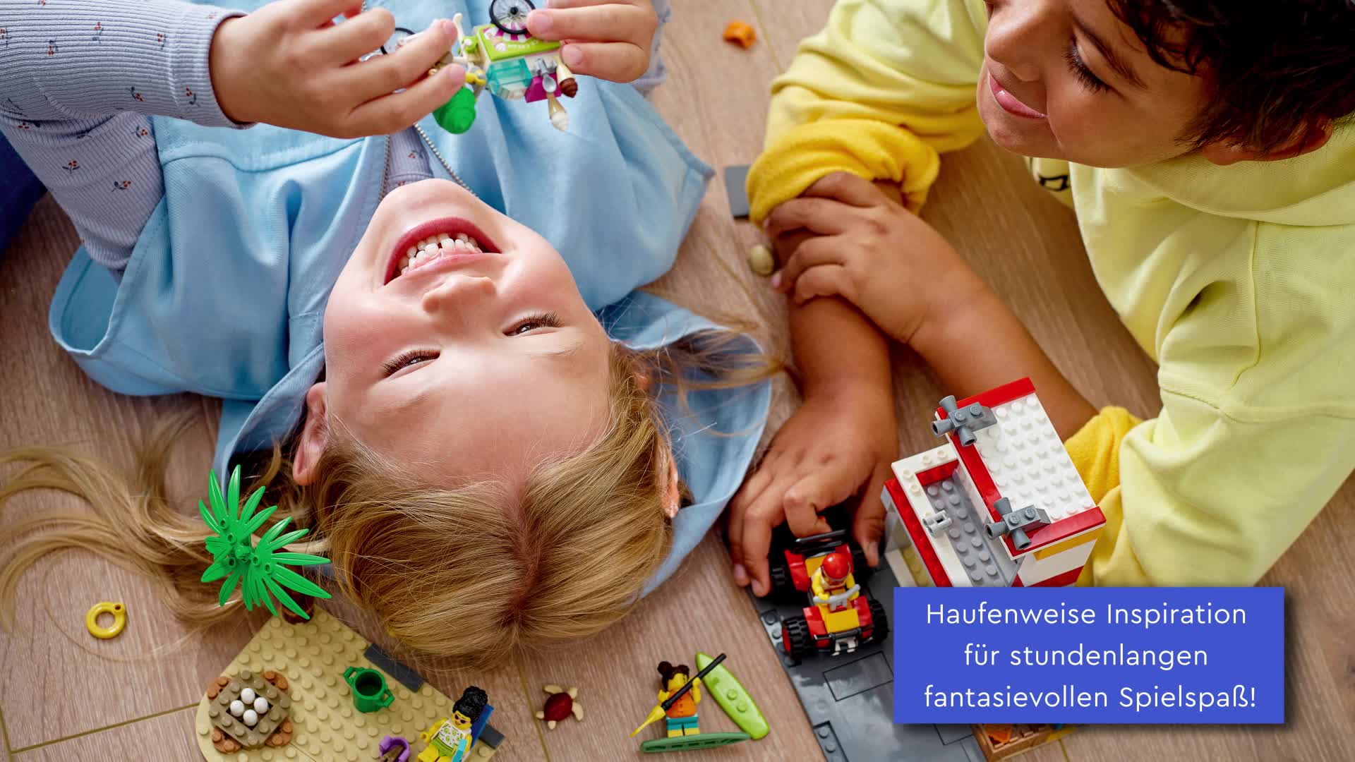 Unabhängig davon gibt es 4 LEGO City Mini-Figuren mithilfe einem Rettungsschwimmer und Strandbesuchern, eine nistende Schildkröte mithilfe Eiern und Krabbenfiguren zu entdecken