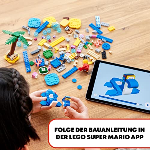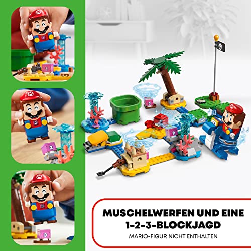 Mit dem Erweiterungsset „Dorries Strandgrundstück“ von LEGO Super Mario kannst du das Mario oder Luigi LEGO Starterset (nicht enthalten) um ein Strandlevel erweitern
