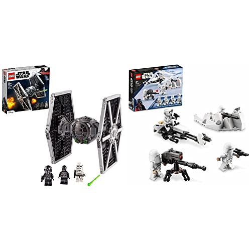 Produkt 1: Enthält 2 LEGO Star Wars Minifiguren: einen TIE-Jägerpiloten mit Blasterpistole und einen Sturmtruppler mit Blaster sowie einen Protokolldroiden der Baureihe NI-L8 als LEGO Figur für spannende Rollenspiele