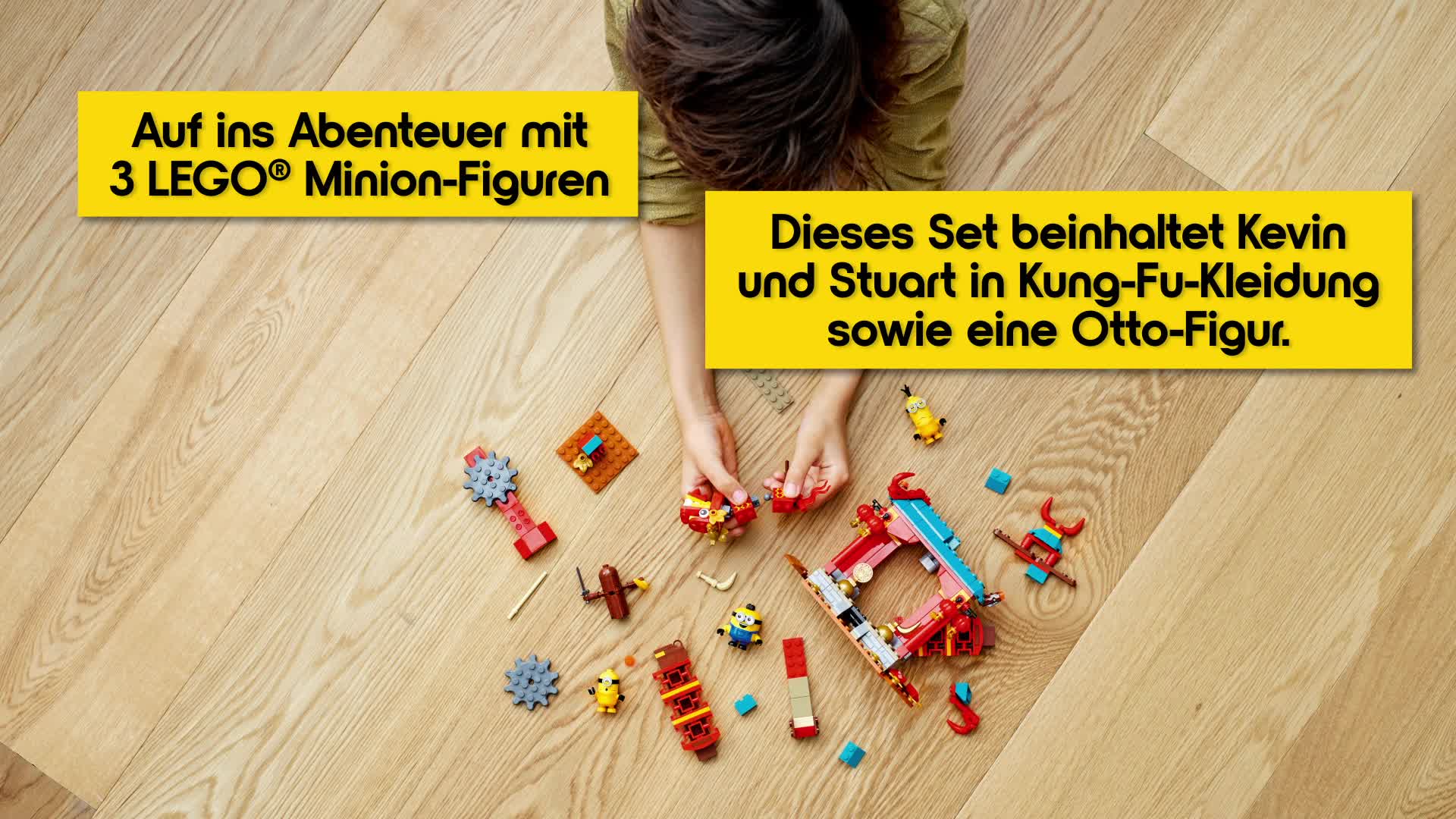 Enthalten sind die Minions Figuren Kevin und Stuart in Kung-Fu-Outfits und eine Figur von Otto, um Szenen aus dem Minions-Film nachzustellen