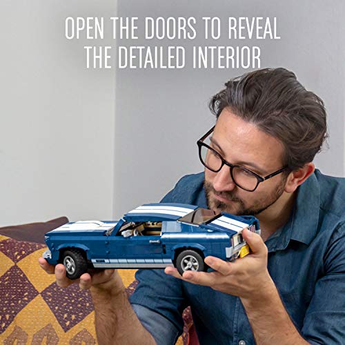 LEGO Creator Ford Mustang 10265 – Entdecke den Zauber, der hinter dem legendären 1960er amerikanischen Muscle-Car steckt. Das eindrucksvolle Modell ist einschließlich dunkelblauer Karosserie mit weißen Rennstreifen, Lufthutze, Mustang- Plakette für den Kühlergrill, GT-Logos und 5-Speichen-Felgen mit straßentauglichen Reifen. Diese originalgetreue Imitation wurde in Zusammenarbeit mit Ford entwickelt und verfügt über zahlreiche optionale Erweiterungen zur individuellen Gestaltung wie Nummernschilder, einen Turbolader, einen Entenbürzel-Spoiler, massive Auspuffrohre, einen Frontspoiler und einen Lachgasbehälter. Sogar die Position der Hinterachse lässt sich für einen besonders dramatischen Look verstellen! Nimm das Dachelement ab oder öffne die Türen, um so auf das detailreiche Innere mit schönen Absitzen, einem Radio, einer funktionstüchtigen Steuerung und einem in der Mittelkonsole platzierten Schalthebel zuzugreifen! Verstaue Kram im Kofferraum oder öffne die Motorhaube, sodass der detailgenaue Big-Block-390-V8-Murl mit Batterie, Schläuchen und Luftfilter zum Vorschein kommt. Dieses Bauset für Fortgeschrittene vermittelt ein anspruchsvolles und lohnendes Bauerlebnis und versprüht jede Absolutbetrag Nostalgie. Solange erweist es sich als wunderbares Ausstellungsstück für Zuhause oder das Büro. Das Modell ist 10 cm hoch, 34 cm lang und 14 cm alkoholisiert. Ein echtes Sammlerstück für jeden Fan. Dieses Set enthält 1.471 Teile und ist entsprechend ab 16 Jahren. Augenmerk: Nicht entsprechend für Kinder unter 36 Monate. Enthält verschluckbare Kleinteile.