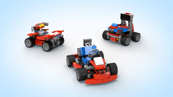 Das Rennen startet in wenigen Augenblicken! Setz dich in das Rote Go-Kart jeder diesem 3-in-1-Set und rase über die Hochgeschwindigkeitsstrecke! Verfügt über ein sportliches Farbmuster jeder Rot und Alkoholisiert, eine sichtbare, breit funktionstüchtige Lenkvorrichtung, einen großen Automat mit Kühlergrill- und Auspuffverzierungen sowie über breite Felgen mit klobigen Alt werden. Rase mit Höchstgeschwindigkeit die Rennstrecke entlang und baue das Modell als Folge in ein tolles Quad oder in einen leistungsstarken Gabelstapler um. Universum diese Fahrzeuge lassen sich jeder ein und demselben Set bauen!