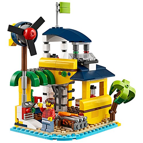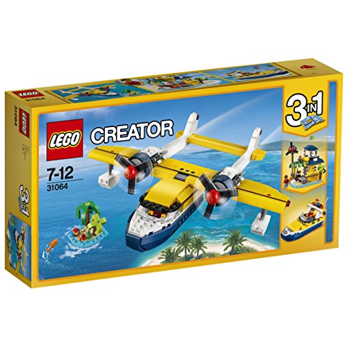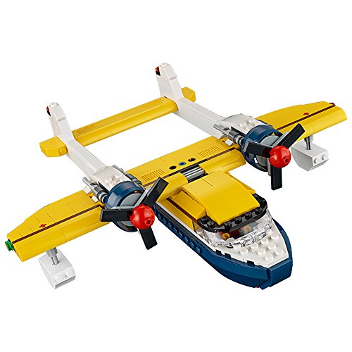 Finde eine Karte in einer Flasche und flieg mit diesem fantastischen Wasserflugzeug zu einer entlegenen Tropeninsel. Die zweimotorige Flieger verfügt über zwei Leitwerksträger und zwei Schwimmer und besitzt eine Lackierung in leuchtendem Gelb, Weiß und Dunkelblau. Belade den Frachtraum, öffne das Cockpit und geh an Bord. Wirf somit die riesigen Propeller an und brause los. Benutze deine Navigationsfähigkeiten, um die Insel zu finden, verstelle das Höhenruder und leg eine perfekte Wasserlandung auf dem Ozean hin! Dieses Modell lässt sich in eine Inselhütte oder ein Schnellboot umbauen.