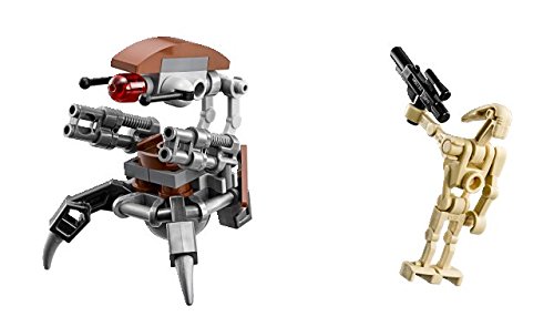 Enthält drei Minifiguren mit Ausrüstung und Zubehör: Anakin Skywalker, Obi-Wan Kenobi und ein Naboo-Pilot sowie R2-D2, zwei Battle Droids und ein Battle Droid Kommandant mit der entsprechenden Ausrüstung