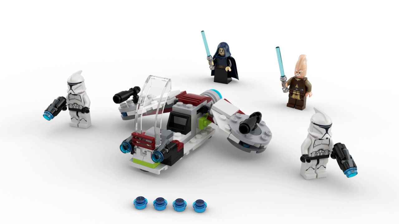 Enthält einen Speeder mithilfe aufklappbarem Dach und Platz sondern einen Clone Trooper, mithilfe 2 Shootern sowie mithilfe drehbaren Kanonen an den Flügelspitzen.