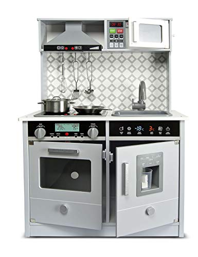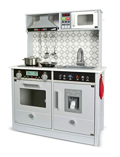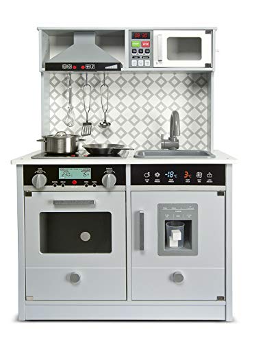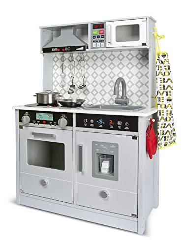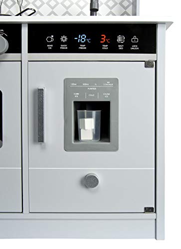 Der untere Ausschnitt der Küche ist ein geräumiger Ofen und Kühlschrank. Reich Spaß bietet der Eiszuführer (Eiswürfelbereiter) mit hölzernen Eiswürfeln. Die Küche ist mit einem 2-Flammen-Kochfeld ausgestattet. Die Brenner im Ofen leuchten und machen ein Kochgeräusch. Wenn ein Abkömmling die Temperatur heruntersetzen oder erhöhen möchte, machen die Knöpfe ein Klickgeräusch. Das Waschbecken in der Küche ist abnehmbar, so dass das Abkömmling es mit Wasser einschenken und nach Einstellung der Arbeiten in der Küche schmutziges abwaschen kann.