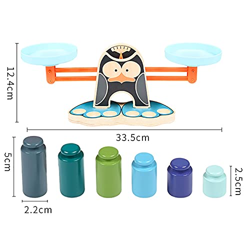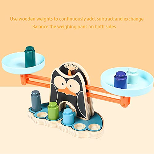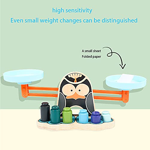 LHZMD Montessori Spielzeug Holz Waage Spielwaage Mit Gewichten Für Kinder Kaufladen Rollenspiele Zubehör (Pinguin)