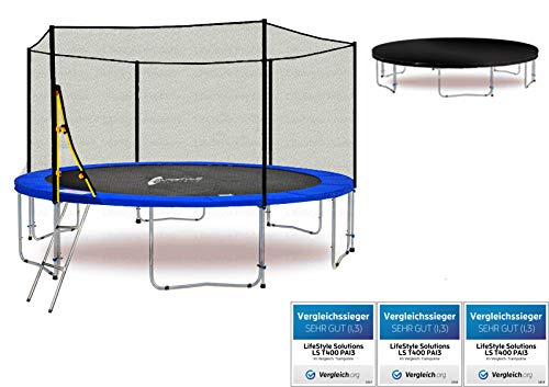 LifeStyle ProAktiv XXL Garten- Trampolin 370cm 12ft – Isoliert Starkes Sicherheitsnetz – 180kg Traglast