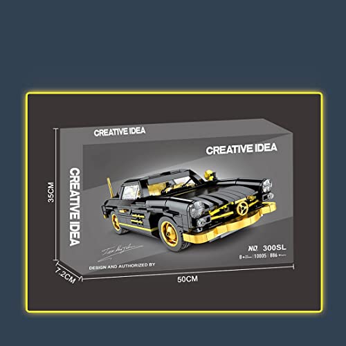LIND Technik Bausteine Auto, 886 Klemmbausteine Technik Rennwagen Bausatz für M-Benz 300SL Gullwing, Technik Sportwagen…