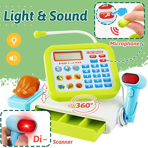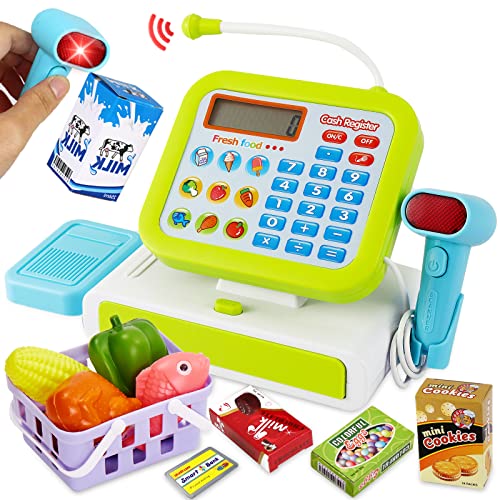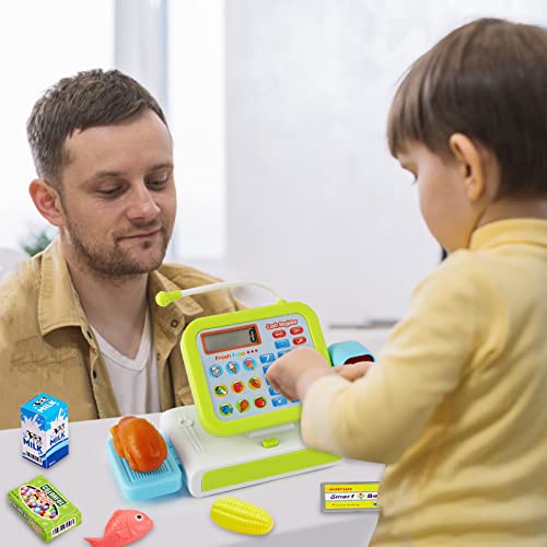【Sound & Licht Scanner】Elektronische registrierkasse kinder mit scanner, Kinder können Spielzeugs canner verwenden, um Lebensmittel zu scannen. Der Scanner blinkt rot und gibt einen „DI“-Ton aus.