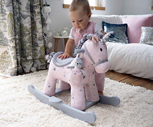 Unicorn Rocking Horse 9m+ & Soft Toy Ride On Baby Toy Sturdy Wooden Grey Rocker Frame Plush Pink Fabric Pony Unicorn…