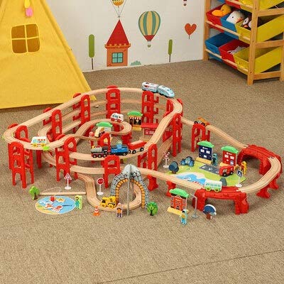 LIUYB Holzeisenbahn Modell Building Blocks Schienengesetztem Holzeisenbahn Elektrische RC Züge Tracks Bahn Lokomotive…