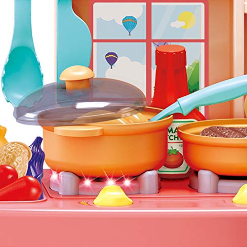 Die Küche nimmt humanisierte Hakendesign, Multi-Storage-Gitter, bequem zum Aufwerten, und hält den Tisch sauber und aufgeräumt; Es gibt vulgo Simulationsbeleuchtung, Küchenutensilien und Klänge, so dass Kinder ein echte Familienerfahrung haben und Kindern eine reiche und interessante Kindheit geben Leben.