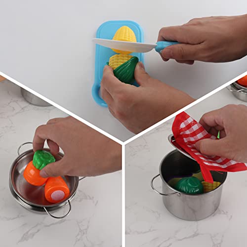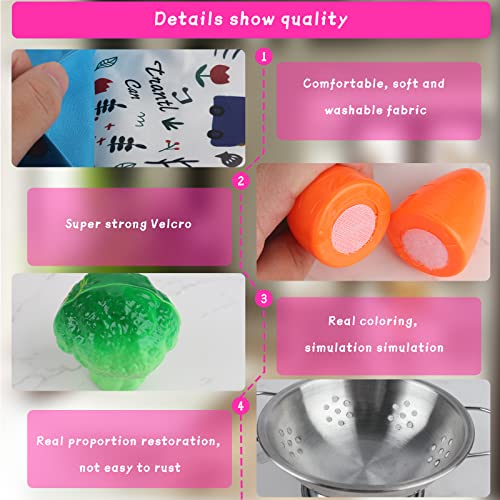 🍳Perfektes Geschenk: Gemüse in verschiedenen Veranstalten und Farben, Küchenutensilien und Töpfe sind charmant und praktisch. Mit vorgetäuschte Spielküche Zubehör Set können Kinder in die Rolle eines Kochs schlüpfen und mit ihren Freunden kochen lernen! Dies ist ein tolles Geschenk für Mädchen und Jungen zu Geburtstagen, Thanksgiving, Weihnachten und Neujahr!
