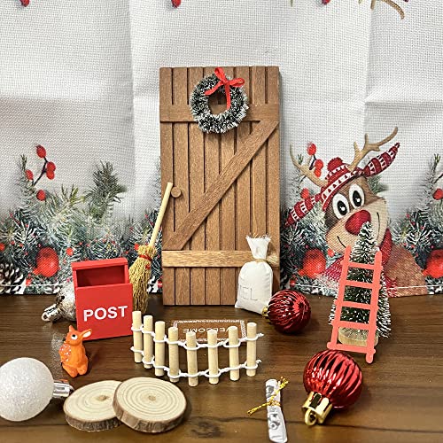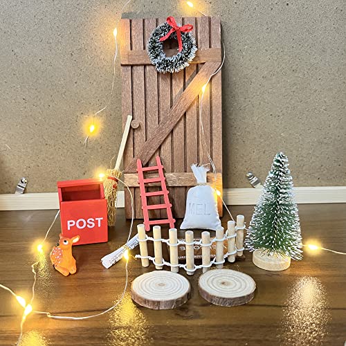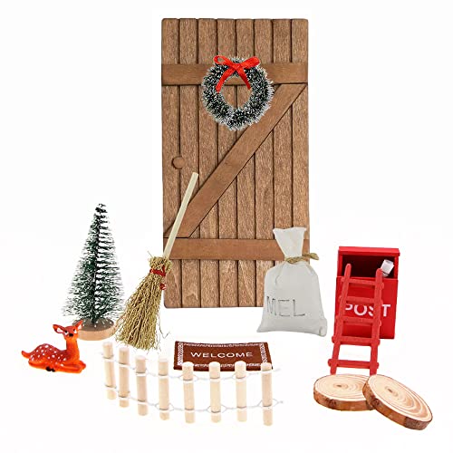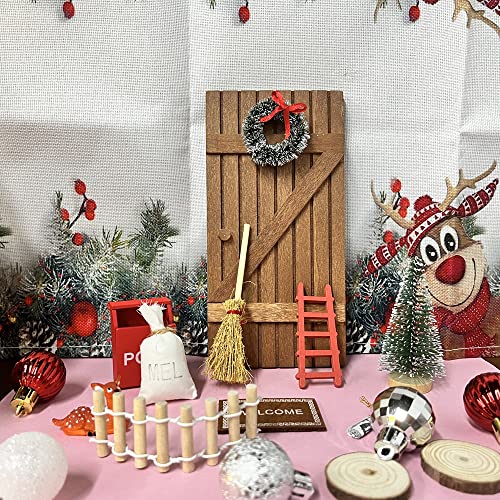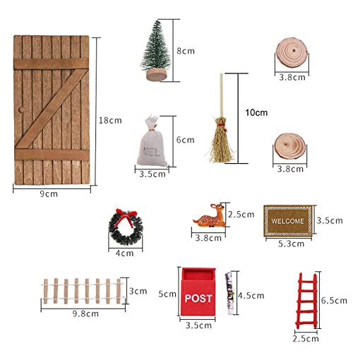 Mini-Elfentür alle Holz, mit anderen Mini-Accessoires als Mini-Weihnachtskranz, Mini-Weihnachtsbaum und Mini-Führer usw., zart und realistisch, bunt, es ist ein ausgezeichnetes Accessoire zum Dekorieren der Weihnachtsszene des Puppenhauses.