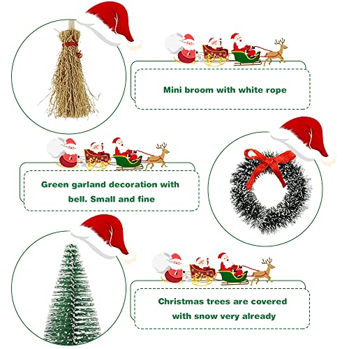 Weihnachtsdekoration Miniatur-Gartendekorationen, einschließlich Wichtel Tür, mini weihnachtsbaum, mehlspielzeug,Briefkastenspielzeug,Leiterspielzeug, einen dekorativen Weihnachtskranz,Teppich,Besen,Baumstumpf,Zaun, Alces alces.