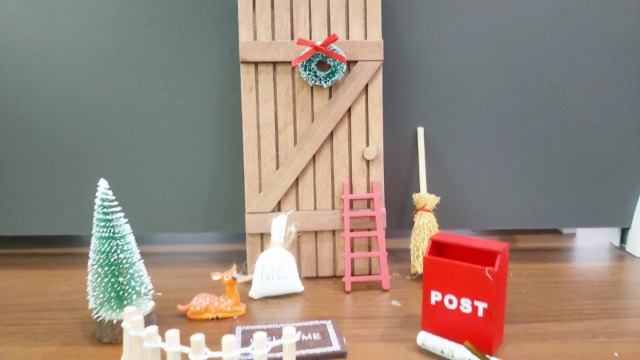 Aus unsere Zubehörteile sind einfach zu festmachen, der rote Mini-Briefkasten, der Besen , die Matte, die grüne Girlande, Aus weiteren Accessoires passen perfekt zur Weihnachten Wichtel Tür. Aus, die an die Wand gestellt oder nach Belieben platziert werden können, um den Spaß am Heimwerken zu genießen.