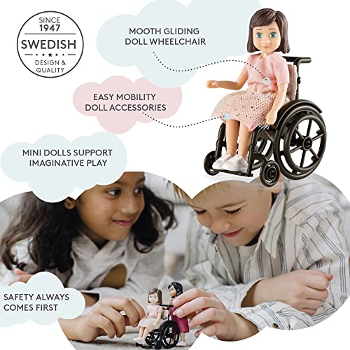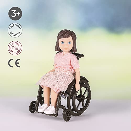 PUPPE MIT ROLLSTUHL & PUPPENKLEIDUNG Diese Kinder Puppe wird mit hochwertiger Puppenkleidung und einem Rollstuhl geliefert, der sich durch die Türen des Lundby Puppenhaus schieben lässt. Um perfekt zum anderen Lundby Puppenhaus Zubehör zu passen, ist diese Puppe klein und biegsam.