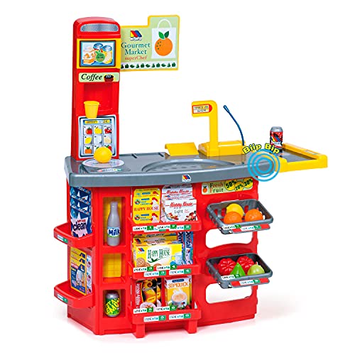 Großer Einkaufsladen mit Einkaufs- und Kassierbereich sowie Einkaufswagen