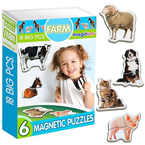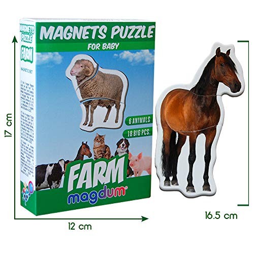 MAGDUM Bauernhof Foto Realistische Magnetische Puzzles enthält: 18 Stück magnetische Segmente für 6 Nutztiere. Die praktische Box hilft Ihnen, das Produkt nach dem Gebrauch zu lagern und auf Reisen mitzunehmen.
