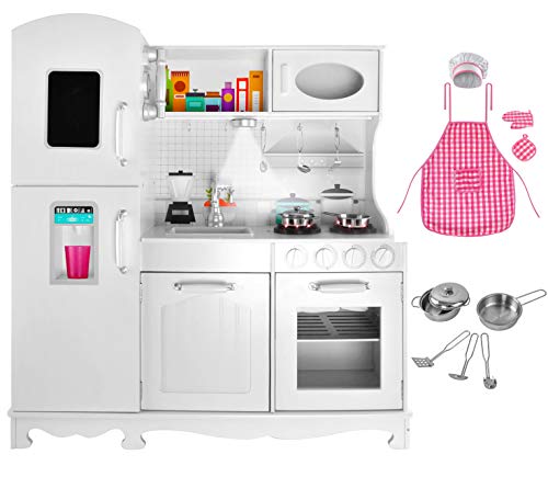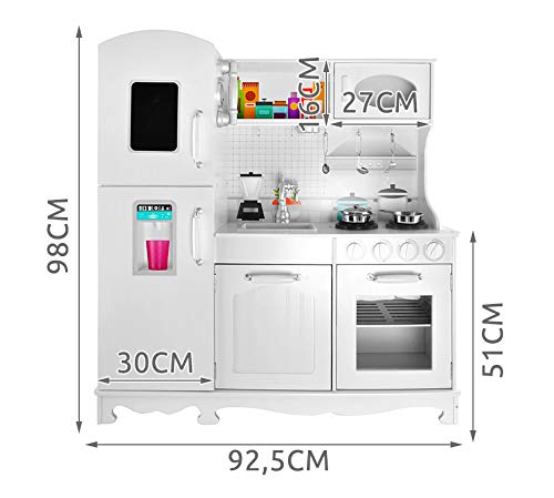 Unsere Spielküche hat ein hübsches Erscheinungsbild und wurde sorgfältig gefertigt und verarbeitet. Die kleinen Details und die einzeln Verzierungen lenken die Aufmerksamkeit der Kinder auf sich und animieren zum Spielen. Die weiße elegante Farbe und die dekorative Fußleiste machen die Spielküche zu einer zusätzlichen Dekoration für das Kinderzimmer. Unser Produkt wurde aus strapazierfähigem Holz gefertigt, dies wirkt sich positiv auf die Haltbarkeit aus. In jedem Schrott ist das Spielen gefestigt für Kinder, es gibt keine scharfen oder spitzen Kanten.