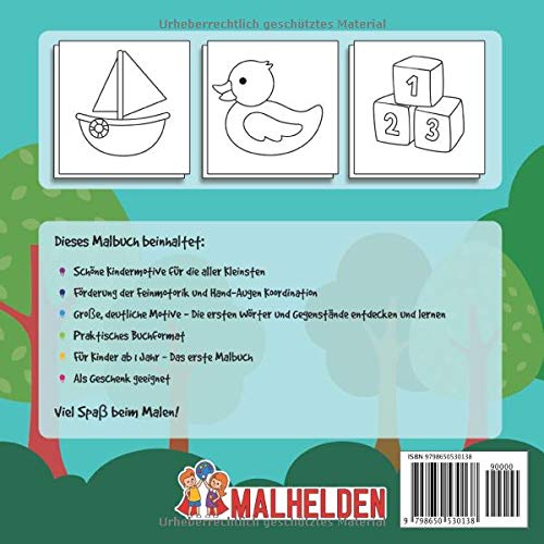 Malbuch ab 1 Jahr: Mein erstes Ausmalbuch zum Malen und Kritzeln zur Förderung der Feinmotorik und Erlernen der ersten…