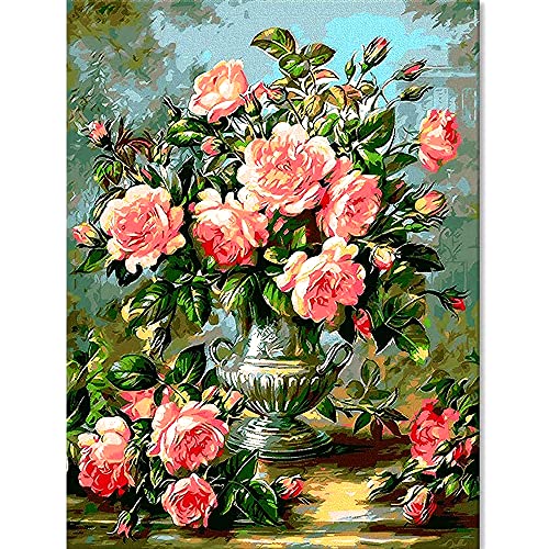 Malen nach Zahlen Erwachsene, DIY Malen nach Zahlen Blumen, Rose Malen nach Zahlen für Erwachsene, Handgemalt Ölgemälde…