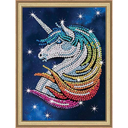 Bastelset mit Motiv Einhorn als ansprechende Vorlage zum Stecken eines individuellen Glitzerbildes für die eigenen vier Wände oder zum Verschenken für die Liebsten