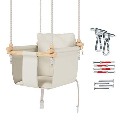 ✔Dank einem Schwamm im Sitzteil ist unsere Babyschaukel formbeständig und sieht immer schön aus – sogar wenn sie abgedroschen ist! Über den Löchern, durch die ein Seil gezogen ist, sind Holzkugeln befestigt. Diese loslösen ein Seil von einer Hand des Kindes ab und schmücken dabei die Schaukel. Ihr Abkömmling kann belastbar mit allen Holzelementen spielen – diese sind nicht lackiert und wurden sorgfältig bearbeitet.