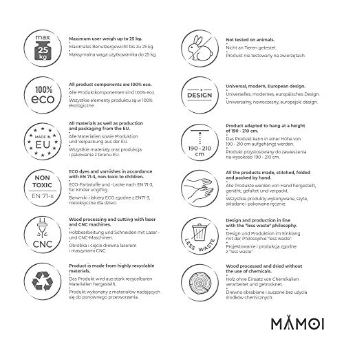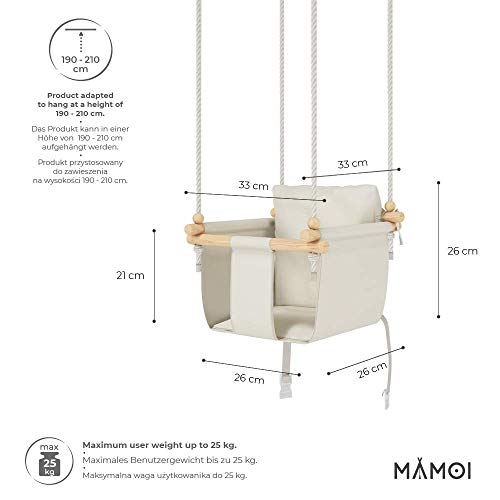 ✔MAMOI Indoor Kinderschaukel ist für Kinder von 8 Monaten bis 3 Jahren empfohlen. Wir haben die weiche Baumwolle mit Flächengewicht von 210 g/m² und die festen französischen Nähte benutzt, was Ihnen die höchste Sicherheit und Festigkeit garantiert. Alle Teile wurden aus grober zweilagiger Baumwolle mit einem engmaschigen Gewirke genäht. Unsere Babyschaukel ist sogar bis 25 kg gefestigt. VERBESSERTE STABILISIERUNG