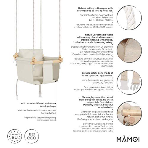 ✔MAMOI hat für Sie ein einzigartiges Produkt vorbereitet – die erste Kinderschaukel, mit dem neuartigen Hüftgurt, der Ihr Abkömmling vor dem Herausfallen schützt. Deswegen ist MAMOI Babychaukel so einzigartig auf dem Marktgebiet. Diese Babyschaukel bietet nicht jedoch viel Spaß, sondern sie gewährleistet auch höchste Sicherheitsniveau.