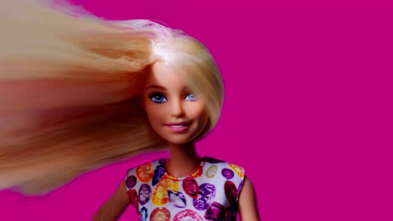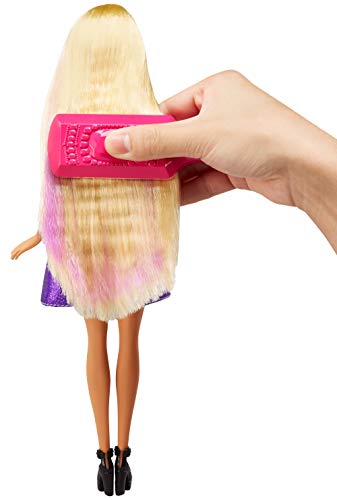 Danach ist Barbies Haar wunderschön gewellt oder gelockt und verzaubert mit leuchtenden Farbsträhnen