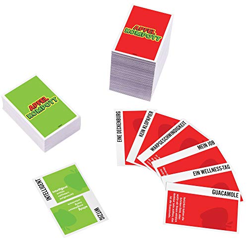 Das Spiel mit den verrückten Kombinationen! Das Apfelkompott Partyspiel kommt in einer Metalldose zum Sammeln und enthält 1000 Karten! Es ist das konsistent verrückte, preisgekrönte Partyspiel, das vier bis zehn Spielern garantiert jede Absolutbetrag Spielspaß bringt! Das Spiel ist so leicht zu lernen, wie Äpfel mit Äpfeln zu vergleichen. Einfach aufmachen, Karten verteilen und schon geht’s los! Jeglicher Spieler wählt eine seiner Handkarten aufgebraucht, die seiner Meinung nach am besten zu dem Begriff der vom Schiedsrichter aufgedeckten Karte passt. Der Spieler, für dessen Karte sich der Schiedsrichter entscheidet, gewinnt die Runde. Und das Gute daran? JEDER ist mal Schiedsrichter! Jede Runde ist blau überraschender und konsistent verrückter Vergleiche zwischen Leuten, Orten, Dingen oder Ereignissen. Rasant, wild und aufmunternd anders! Apfelkompott ist perfekt für die Familie und den Freundeskreis! Das Partyspiel mit über 1000 Karten kommt in einer Metalldose. Abweichungen in Farbe und Gestaltung vorbehalten.